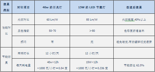普通灯具的光效低,为满足照度要求必须增大灯具功率,而且使用现场的工作时间通常在7-8小时以上。造成了能源的浪费,严重影响到单位的节能指标与社会责任,给单位的经济效益带来了很大的负面影响。